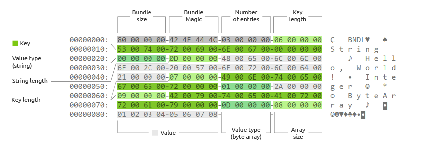 Parcel 中所有值均为 4 字节对齐,定长字段最少 4 字节,变长字段以 4 个字节的长度开头,后面的内容也需要填充至 4 字节对齐;字符串两个字节为一个单位(也就是实际读取字节数为两倍长度加上填充);全部数值为小端序(LE)。